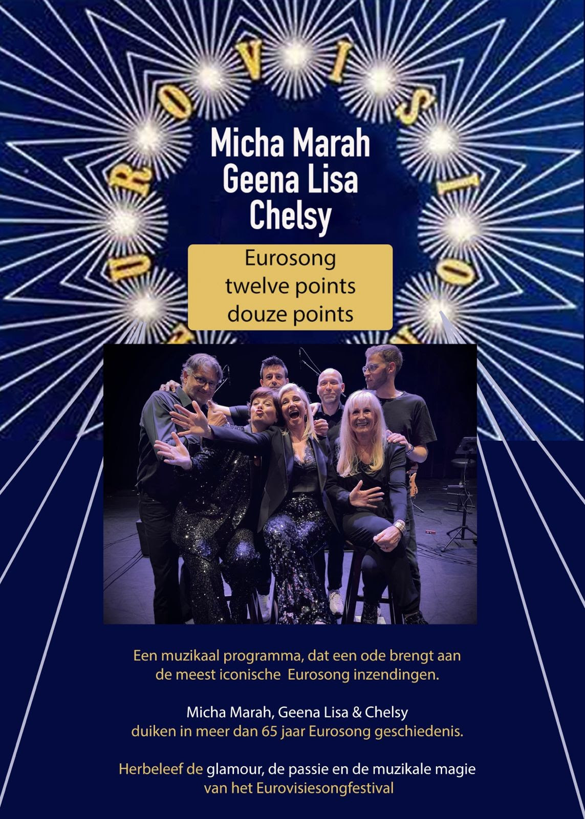 begeleid door een fantastische liveband. Van tijdloze klassiekers tot meezingers die iedereen kent — deze show dompelt je onder in pure Eurosong-magie!
