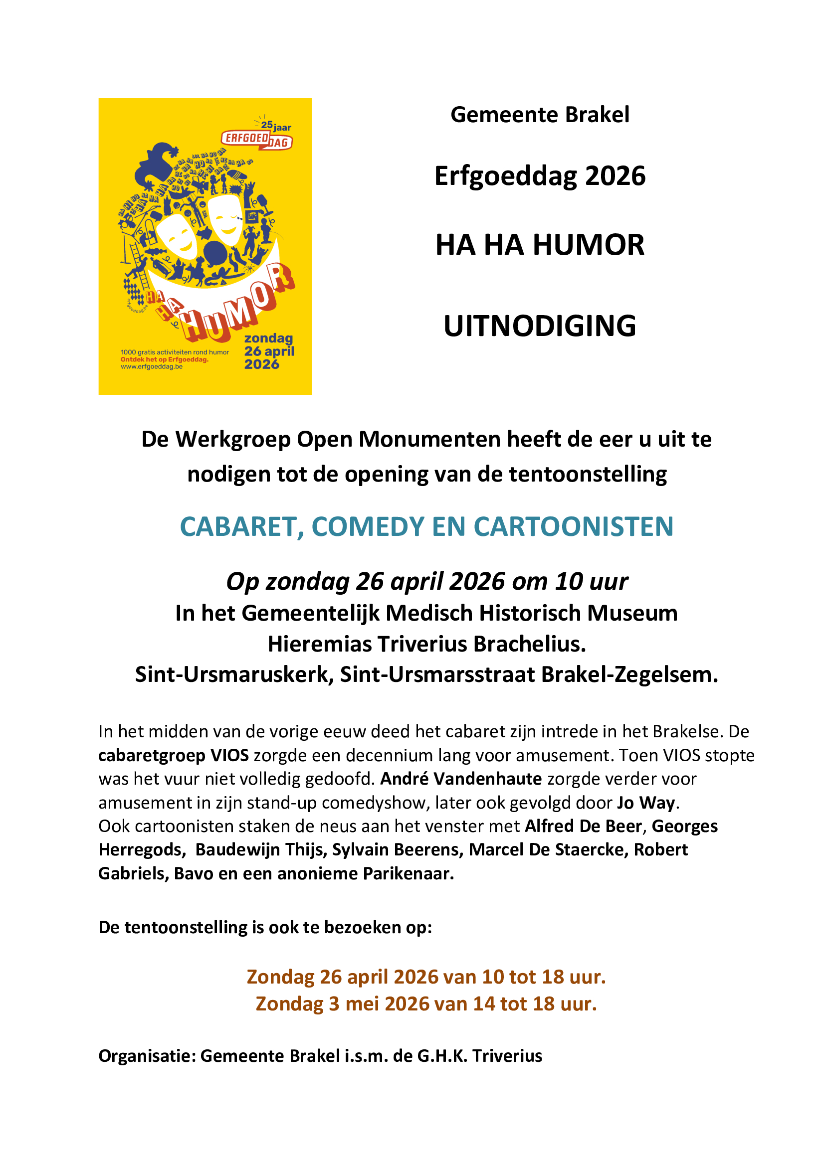 In het midden van de vorige eeuw deed het cabaret zijn intrede in het Brakelse. De cabaretgroep VIOS zorgde een decennium lang voor amusement. Toen VIOS stopte was het vuur niet volledig gedoofd. André Vandenhaute zorgde verder voor amusement in zijn stand-up comedyshow, later ook gevolgd door Jo Way. Ook cartoonisten staken de neus aan het venster met Alfred De Beer, Georges Herregods, Baudewijn Thijs, Sylvain Beerens, Marcel De Staercke, Robert Gabriels, Bavo en een anonieme Parikenaar.