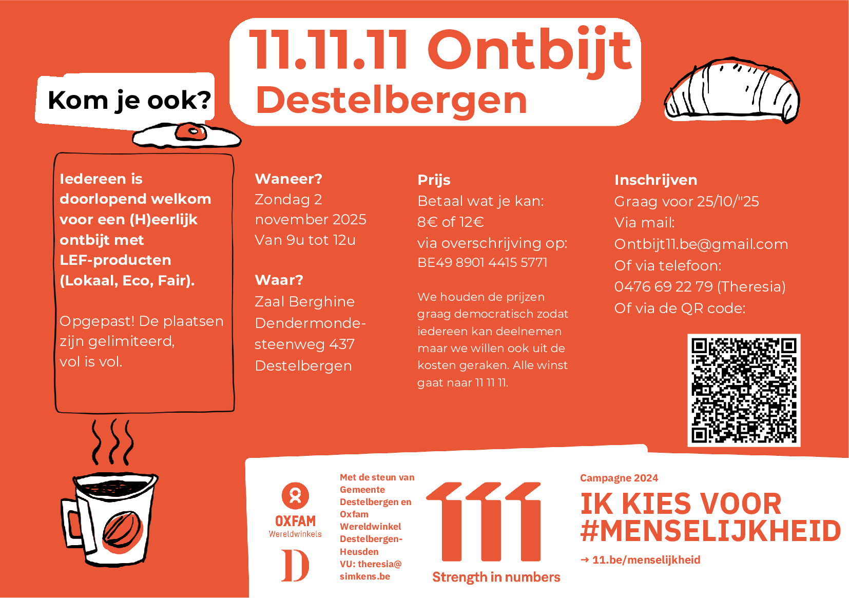 Dit jaar nodigen wij jullie uit voor het (h)eerlijk ontbijt op zondag 2 november tussen 9u en 12u.