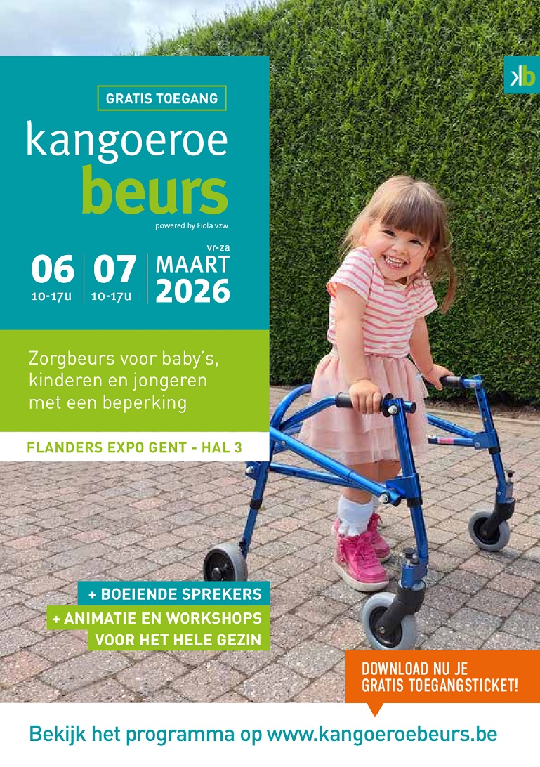 De Kangoeroebeurs is een uniek, gezinsvriendelijk evenement in Vlaanderen. Je vindt er alles over zorg, ondersteuning, hulpmiddelen, educatie en vrije tijd voor kinderen en jongeren met een beperking. De meer dan 75 standhouders, activiteiten, workshops en sprekers zorgen voor momenten van inspiratie, rust én verbinding. Er is ruimte om in gesprek te gaan, vragen te stellen, hulpmiddelen te testen en een nieuwe sport of hobby uit te proberen.