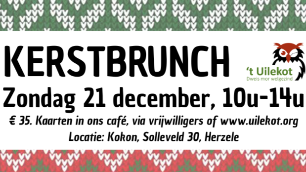 Om onze kas te speizen organiseren wij met ’t Uilekot op zondag 21.12, van 10u – 13u, een kerstbrunch in Kokon, familiecafé Solleveld 30, 9550 Herzele