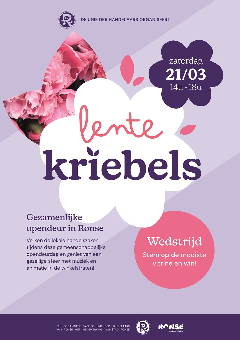 Op zaterdag 21 maart vindt opnieuw het evenement Lentekriebels plaats in het centrum van Ronse. Lentekriebels is bovendien een soort gezamenlijke opendeurdag voor de lokale handelaars.