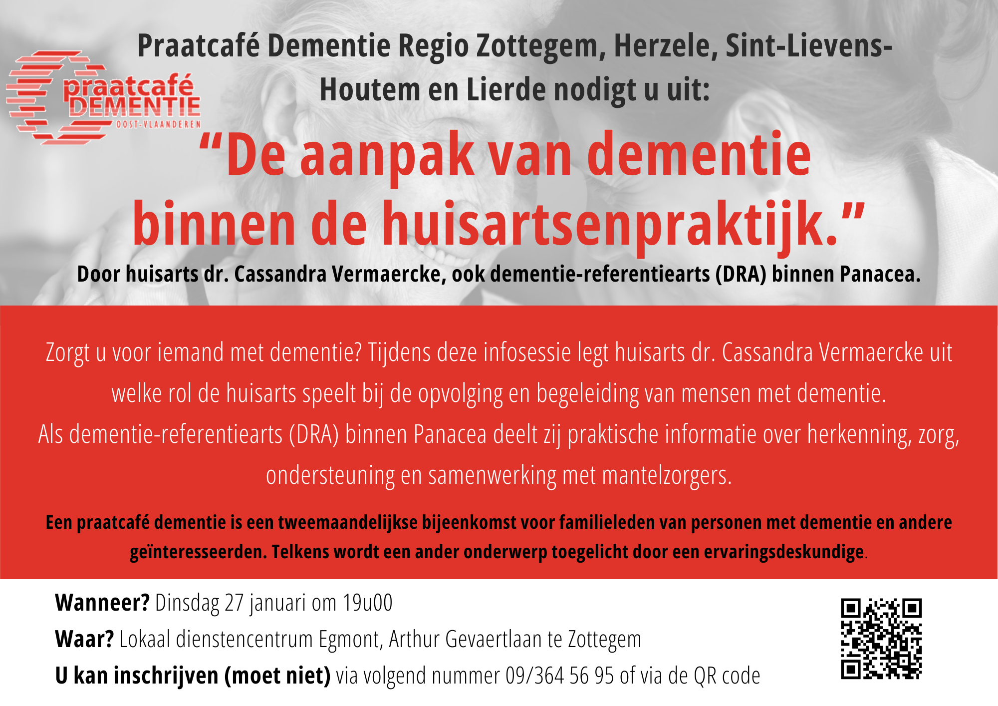 Zorgt u voor iemand met dementie? Tijdens deze infosessie legt huisarts dr. Cassandra Vermaercke uit