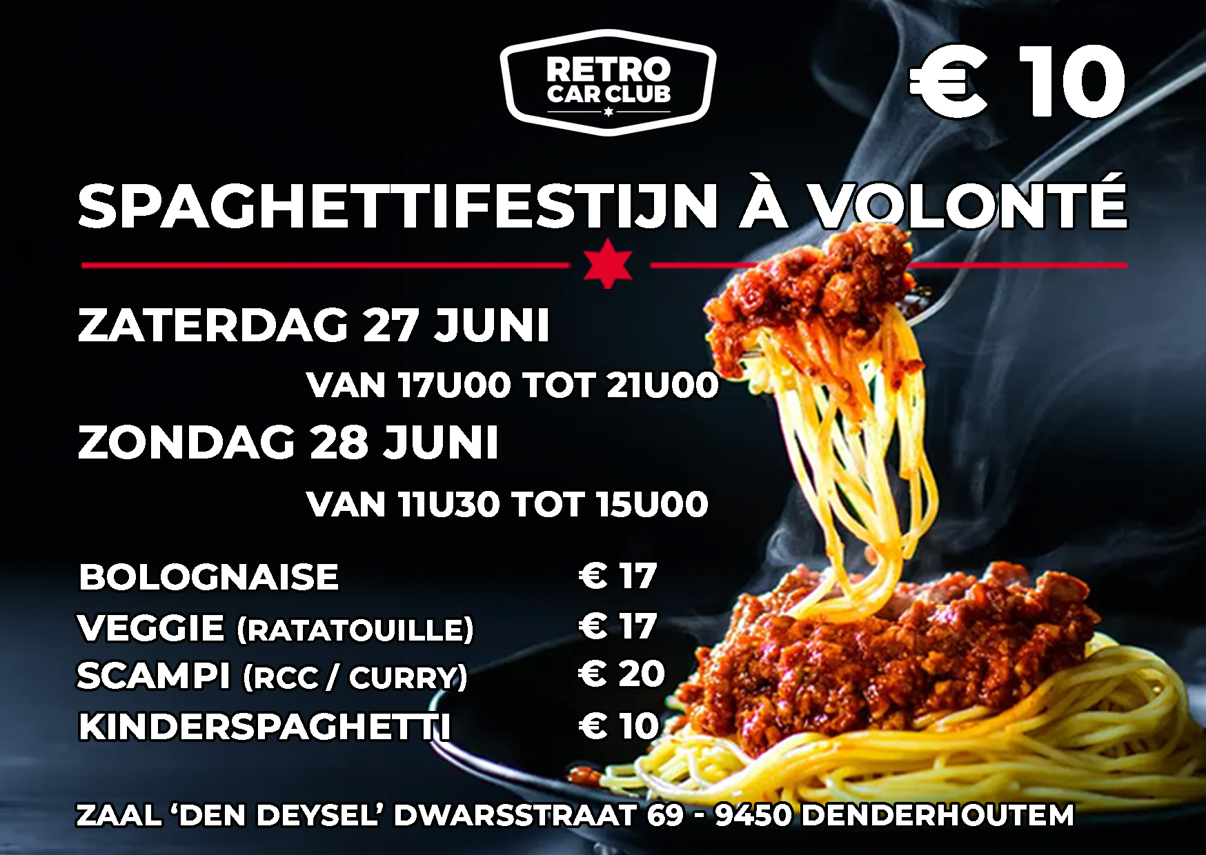Retro Car Club nodigt je van harte uit op hun Spaghettifestijn.