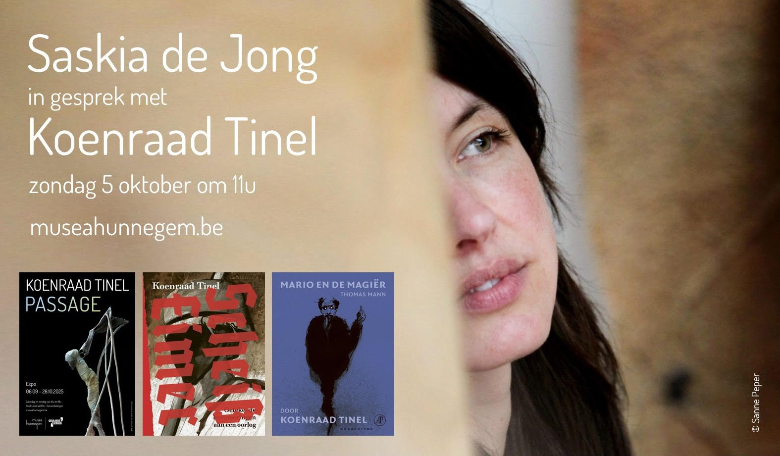 De Vrienden van Musea Hunnegem nodigen u van harte uit op 5 oktober om 11u voor een matinee waarbij de gelauwerde Nederlandse schrijfster en dichteres Saskia de Jong in gesprek zal gaan met kunstenaar Koenraad Tinel over zijn werk, zijn graphic novels ‘Scheisseimer’ en ‘Mario en de magiër’ en over de expo ‘Passage’ die momenteel te zien is in Musea Hunnegem in Geraardsbergen.