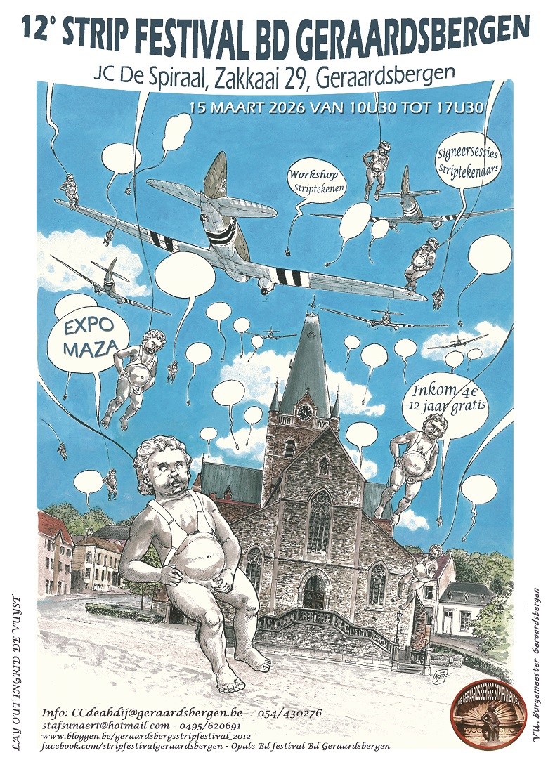 Dit jaar vieren we het 12de stripfestival in Geraardsbergen met tal van auteurs. Zoals elk jaar zullen de vaste ingrediënten aanwezig zijn: standen met eerste- en tweedehands strips, signeersessies met tal van tekenaars uit binnen- en buitenland.