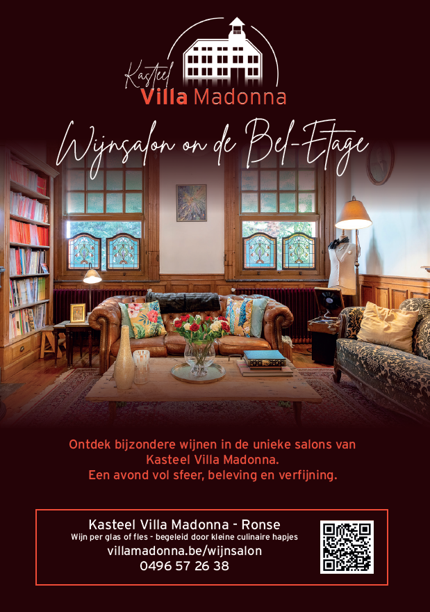 Registratie verplicht : villamadonna.be/wijnsalon  0496 57 26 38