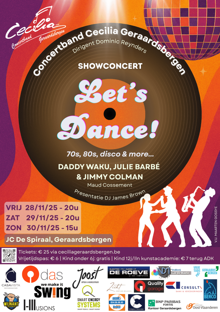 10 september 2025Concertband Cecilia brengt Let's Dance! Vrijdag 28 november 2025 - 20u Zaterdag 29 november 2025 - 20u Zondag 30 november 2025 -…