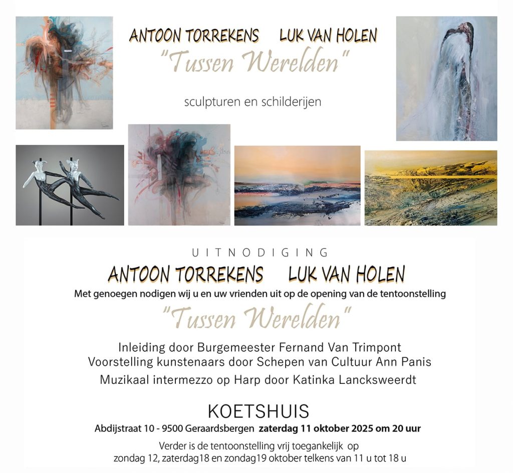9 september 2025Tussen Werelden tentoonstelling in het Koetshuis, Abdijstraat Geraardsbergen zo 12 oktober en za & zo 18,19 oktober telkens van 11…