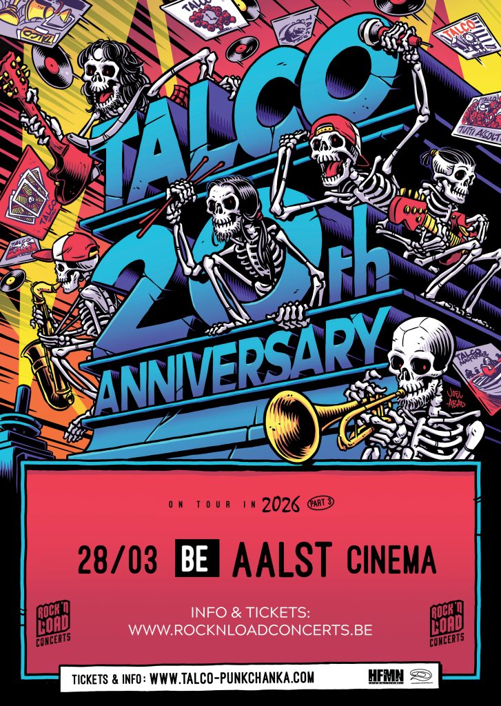 23 juli 2025zaterdag - 28 maart, 2026 19:00 Cinema Hopmarkt 13 9300 Aalst Prijs: € 24 * - Deurprijs: € 27 reserveer Talco ska/punkrock Sinds we Talco…