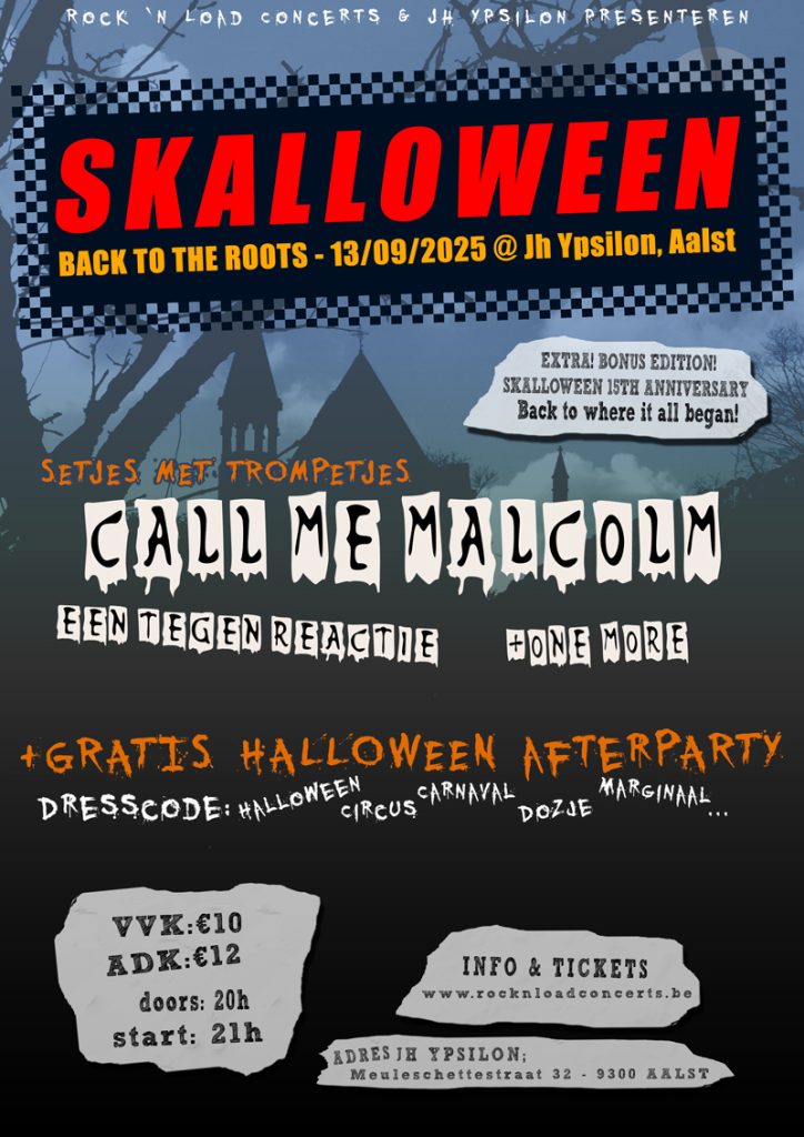 20 juli 2025Skalloween Back to the roots zaterdag - 13 september, 2025 - 20:00 JH Ypsilon Meuleschettestraat 32 9300 Aalst Prijs: € 12…
