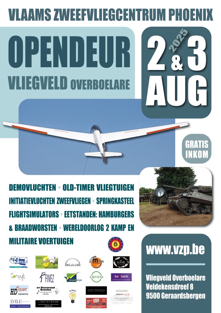 22 juli 2025Vlaams zweefvliegcentrum Phoenix Jaarlijks opendeur weekend 2 & 3 augustus 2025 van 10:00 tot 19:00 Veldekensdreef 8, 9500 Geraardsbergen *…