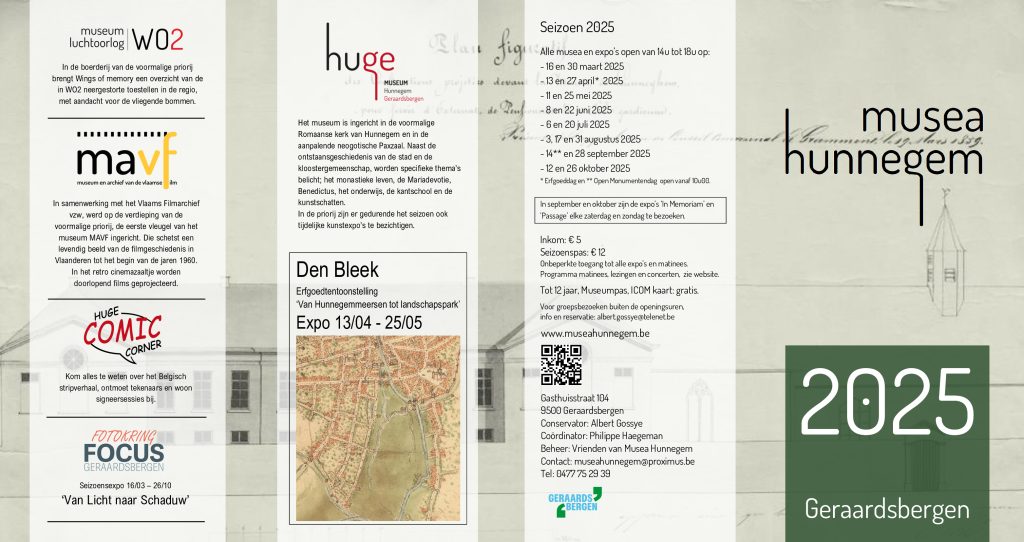 18 april 2025Nieuwe erfgoed- en kunsttentoonstellingen in Musea Hunnegem °Het Funerair Erfgoed van Hunnegem 16.03-16.10.2025 °Expo Den Bleek 13.04-25.05.2025 °Expo Intuitie 13.04-31.08.2025…
