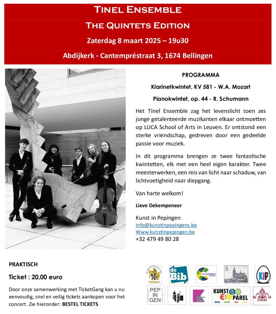 10 februari 2025zaterdag 08-03-2025 19u30 Abdijkerk Bellingen, Pepingen tickets 20 € meer info zie boven info@kunstinpepingen.be https://www.kunstinpepingen.be/