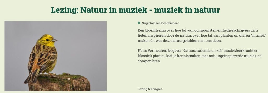 Lezing ‘Natuur in Muziek – Muziek in Natuur’