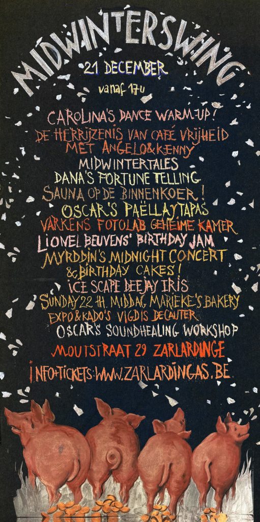 14 december 2024Midwinterswing ZATERDAG 21 DECEMBER 2025 - 17:00 Zarlardingas, Moutstraat 29, 9500 Geraardsbergen *Wat mag je verwachten?* *Doorlopend vanaf 17u* Gezelligheid! Kaarslicht,…