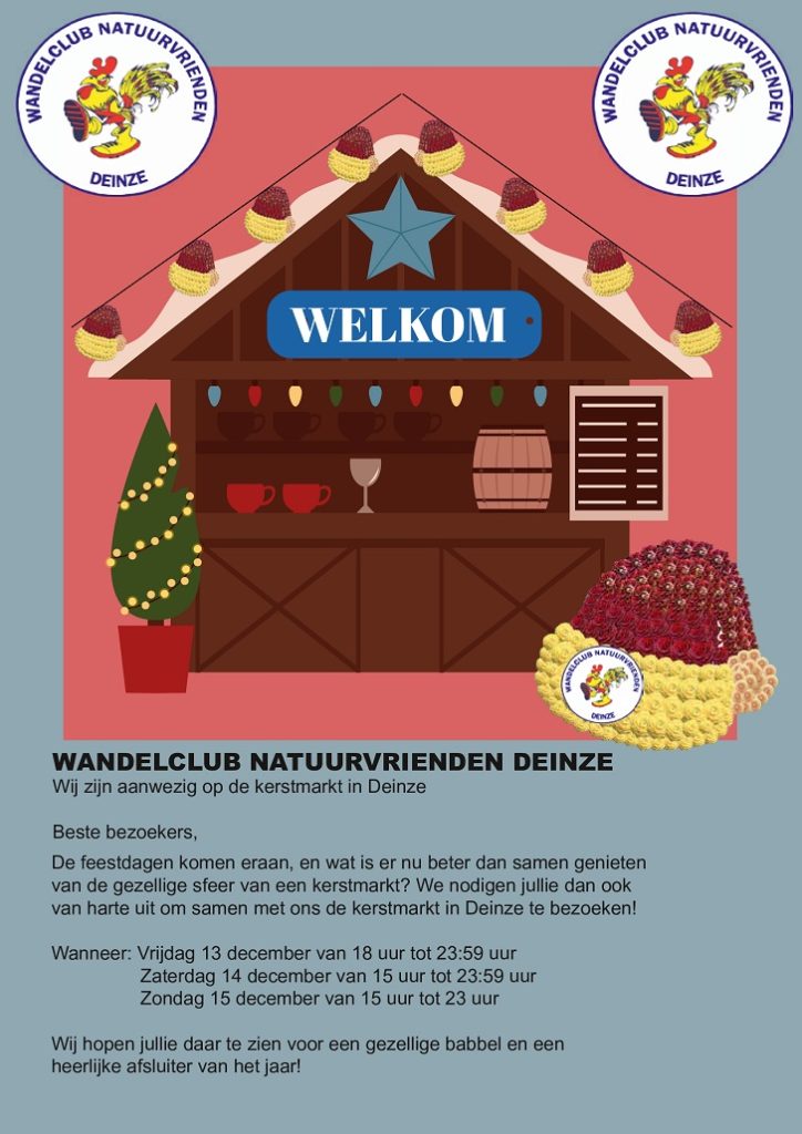 3 december 2024Wanneer vr 13 december 2024 van 18 tot 23.59 uur za 14 december 2024 van 15 tot 23.59 uur zo 15 december 2024 van 15 tot 23 uur Markt, 9800 Deinze…