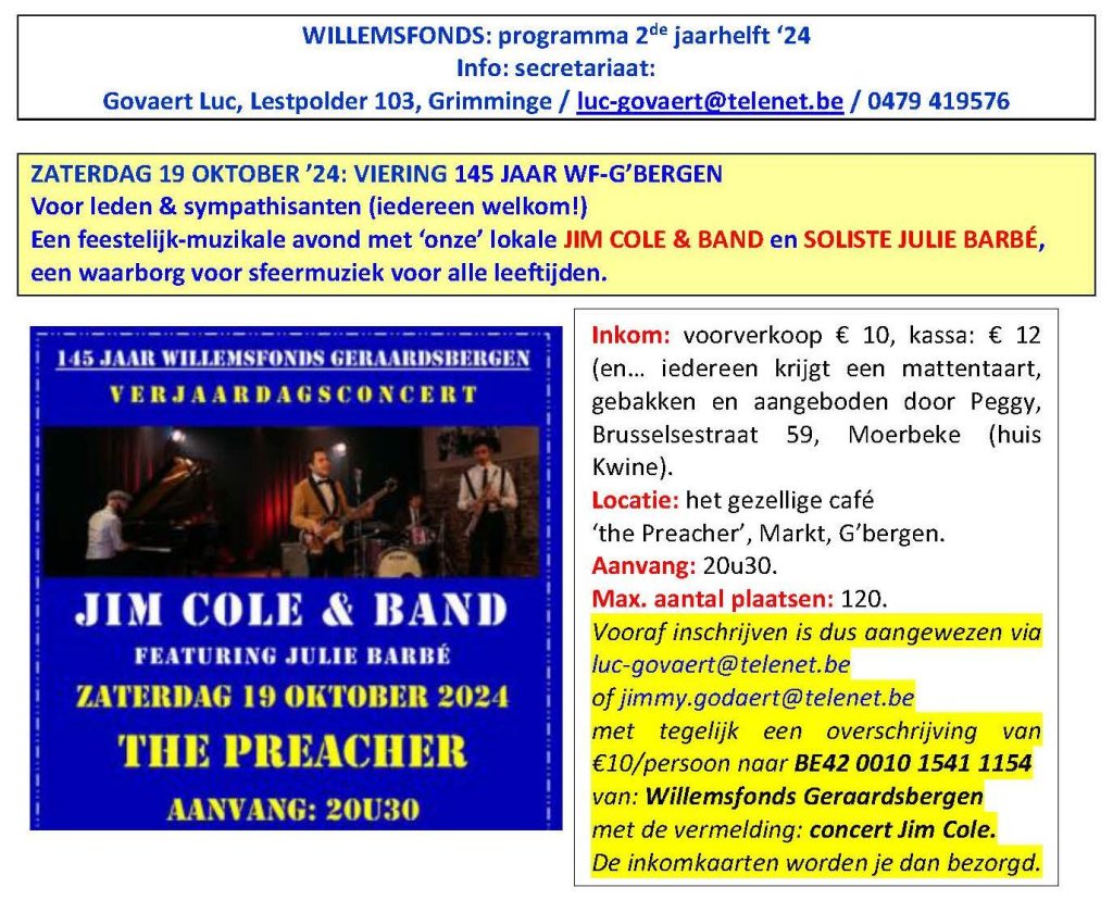 28 augustus 2024Willemsfonds Geraardsbergen 145 jaar zaterdag 19 oktober 2024 20u30 The Preacher Markt Geraardsbergen Inkom 10 € - Vooraf inschrijven bij…