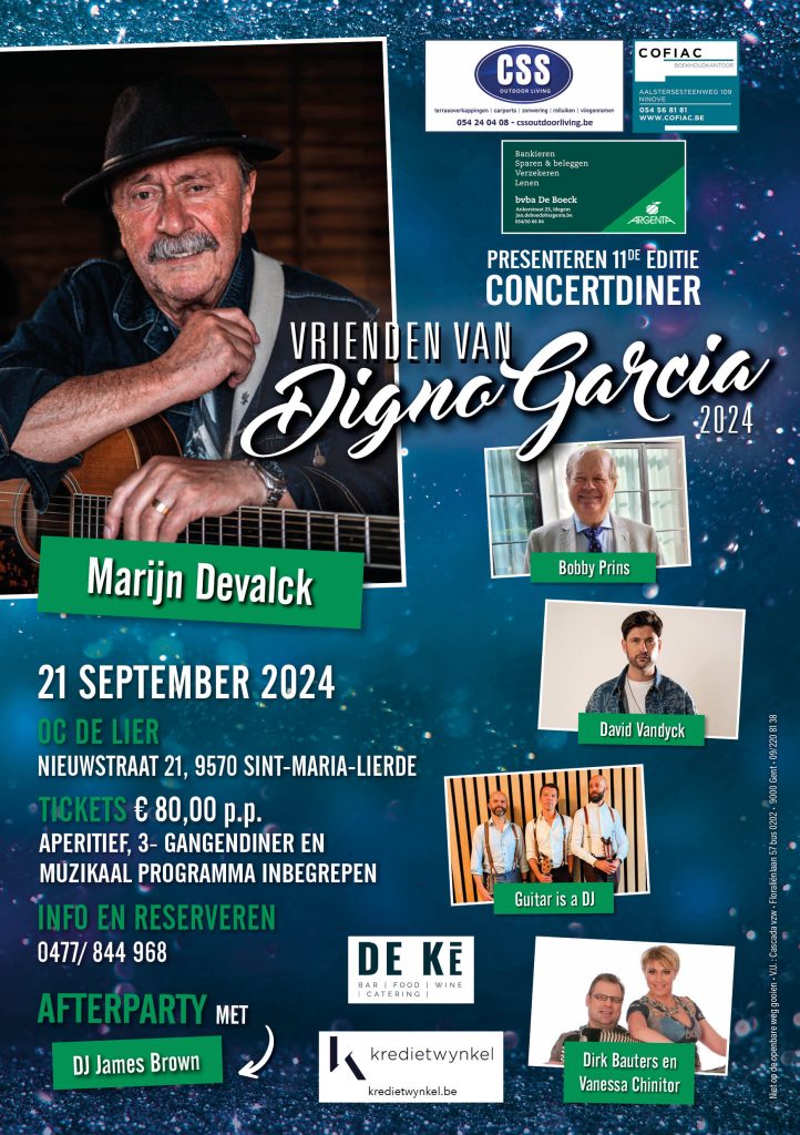 24 augustus 202411e editie van het concertdiner ‘Vrienden van Digno Garcia’ zaterdag 21 september OC De Lier te Sint-Maria- Lierde Tickets 80 € -…