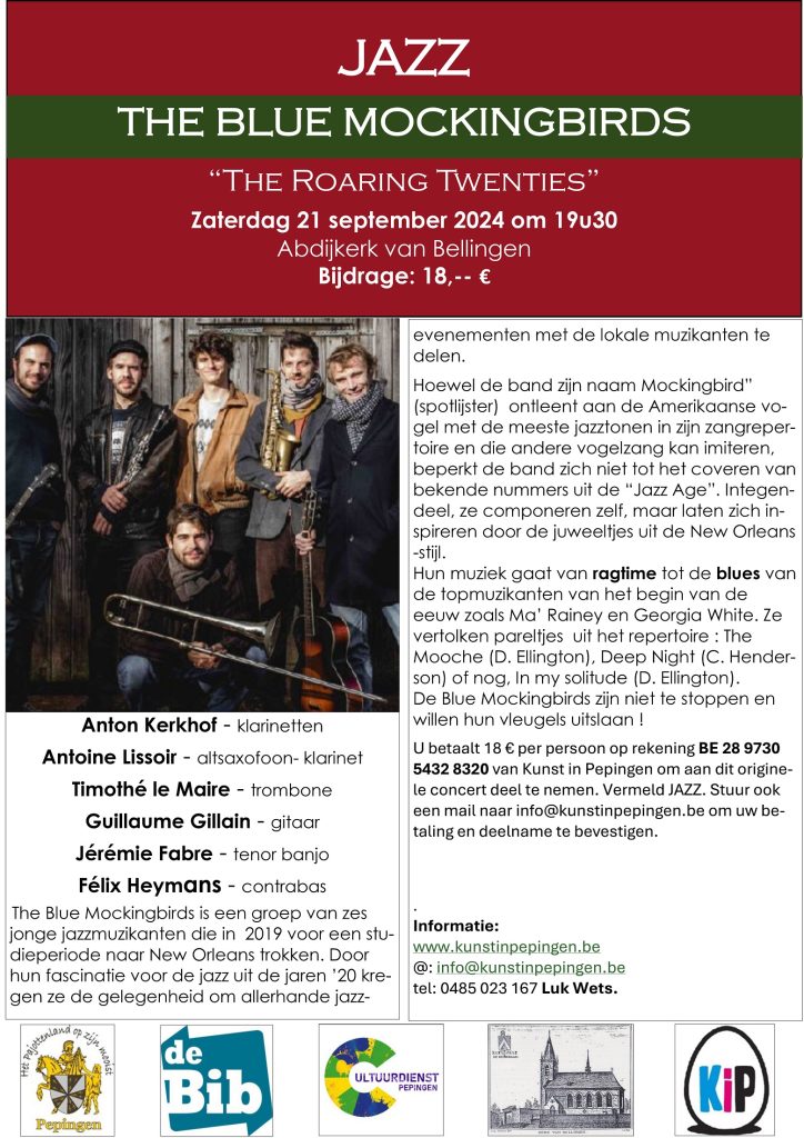 25 augustus 2024"The roaring twenties" zaterdag 21 september 2024 - 19:30 Abdijkerk van Bellingen in 18 € U betaalt 18 € per…