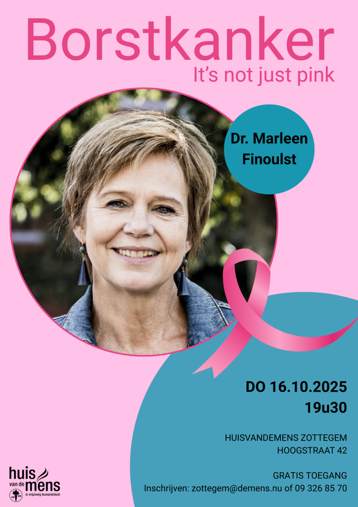 9 september 2025UITGESTELD !!!!!!!! BORSTKANKER It's not just pink Do 16 oktober 2025 - 19u30 HuisvandeMens, Hoogestraat 42, Zottegem Gratis toegang…