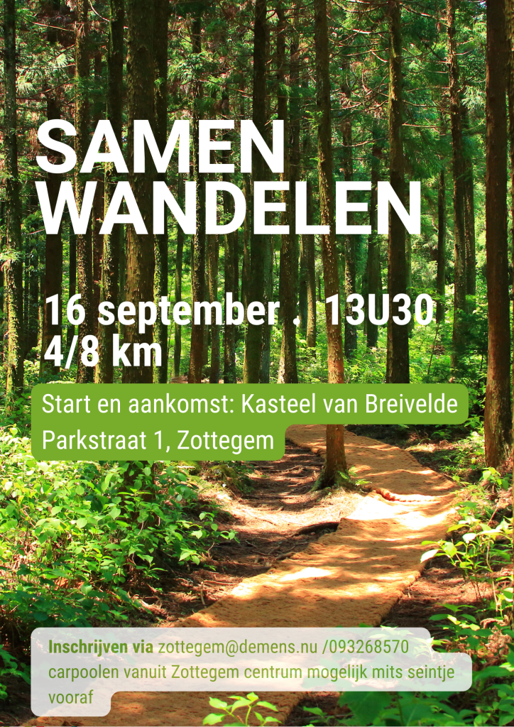 9 september 2025dinsdag 16 september 2025 - 13u30 Parking Kasteel van Breivelde, Parkstraat 1, 9620 Zottegem gratis Graag inschrijven voor 12 september…