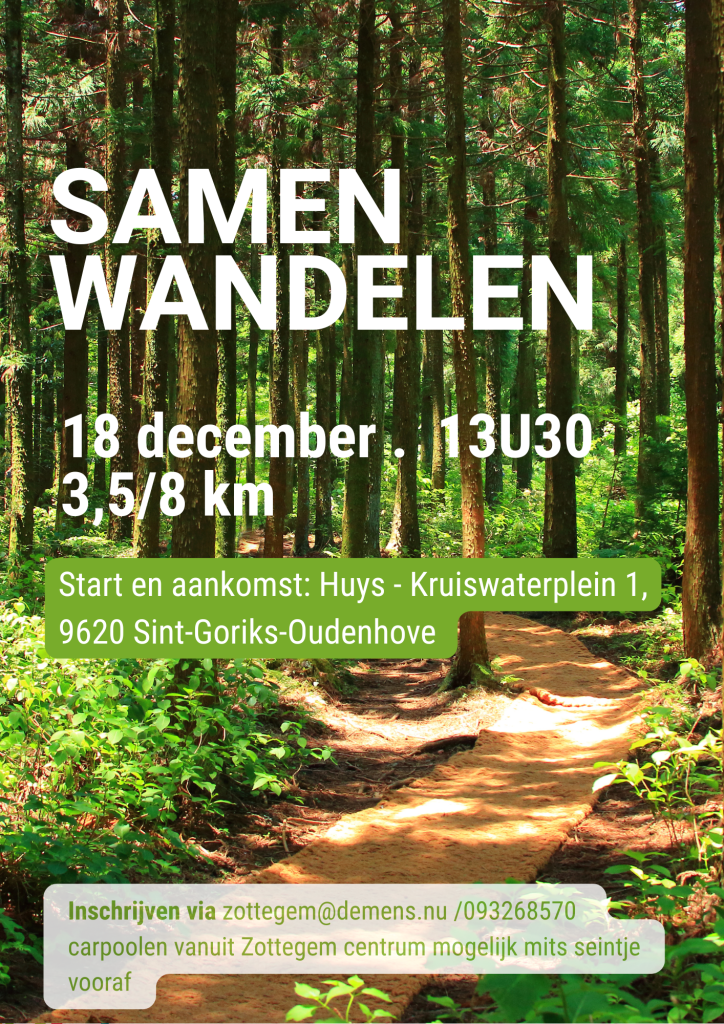 28 november 2025Donderdag 18 december 2025 - 13u30 Huys - Kruiswaterplein 1, 9620 Sint-Goriks-Oudenhove gratis Graag inschrijven voor 13 december via zottegem@deMens.nu…