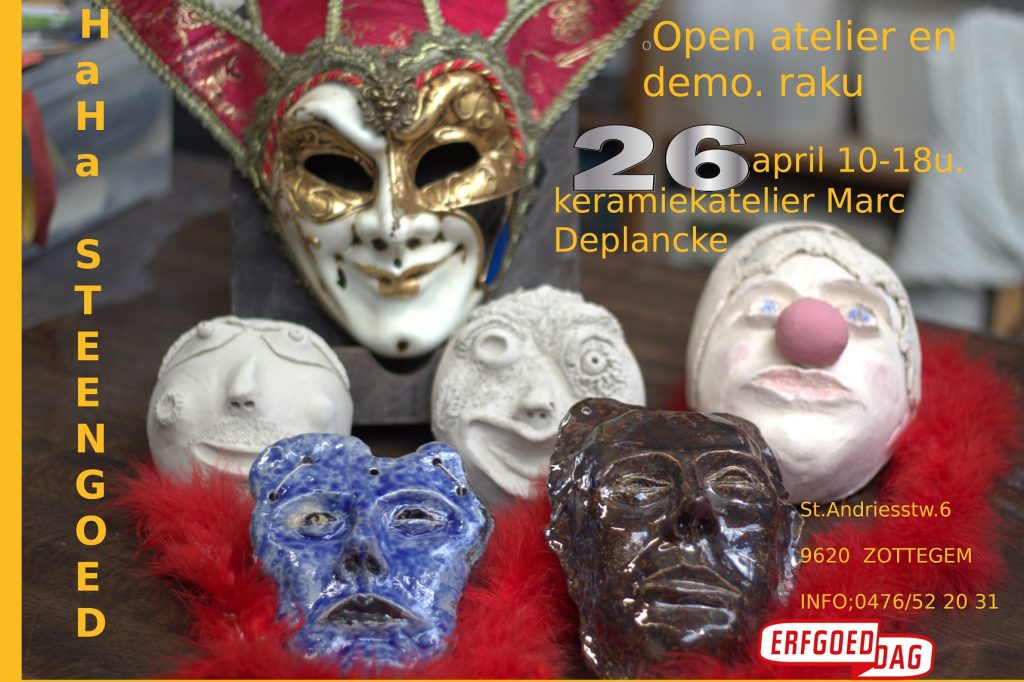 3 april 2026Keramiekatelier Marc Deplanckeopen atelier zondag 26 april 2026 - 10:00 tot 18:00Sint Andriessteenweg 6 Zottegem Ha ha Steengoed Onder het…