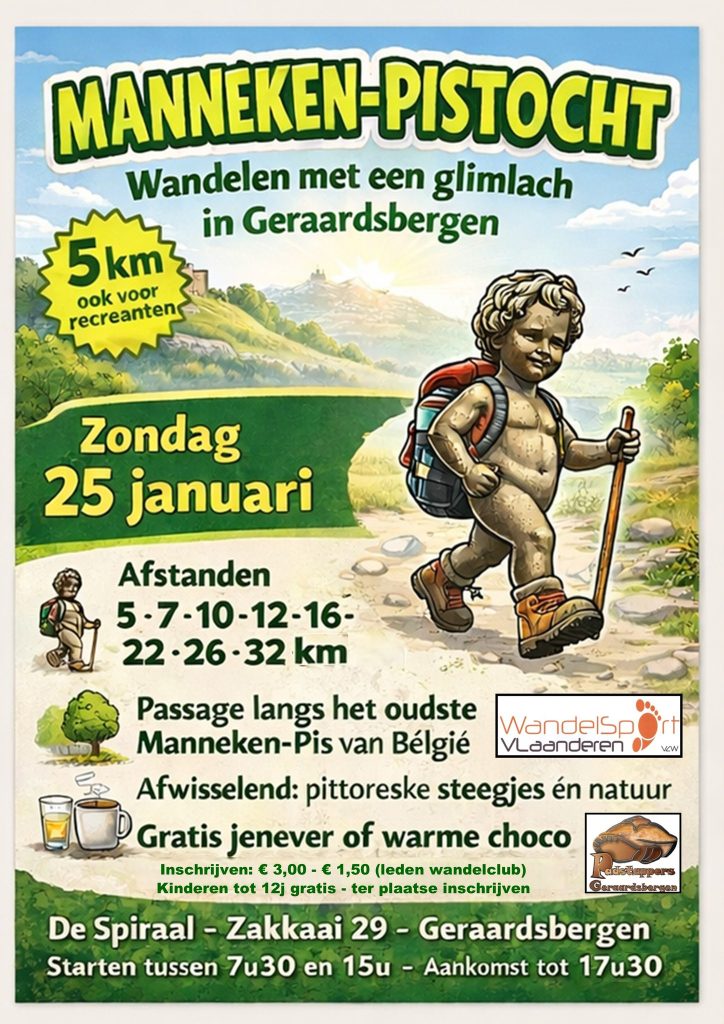 19 oktober 2025Zondag 25 januari 2026 Jeugdcentrum De Spiraal, Zakkaai 29, 9500 GERAARDSBERGEN MANNEKEN PIS-TOCHT – Priortrofee Starten tussen 7u30 en 15u…
