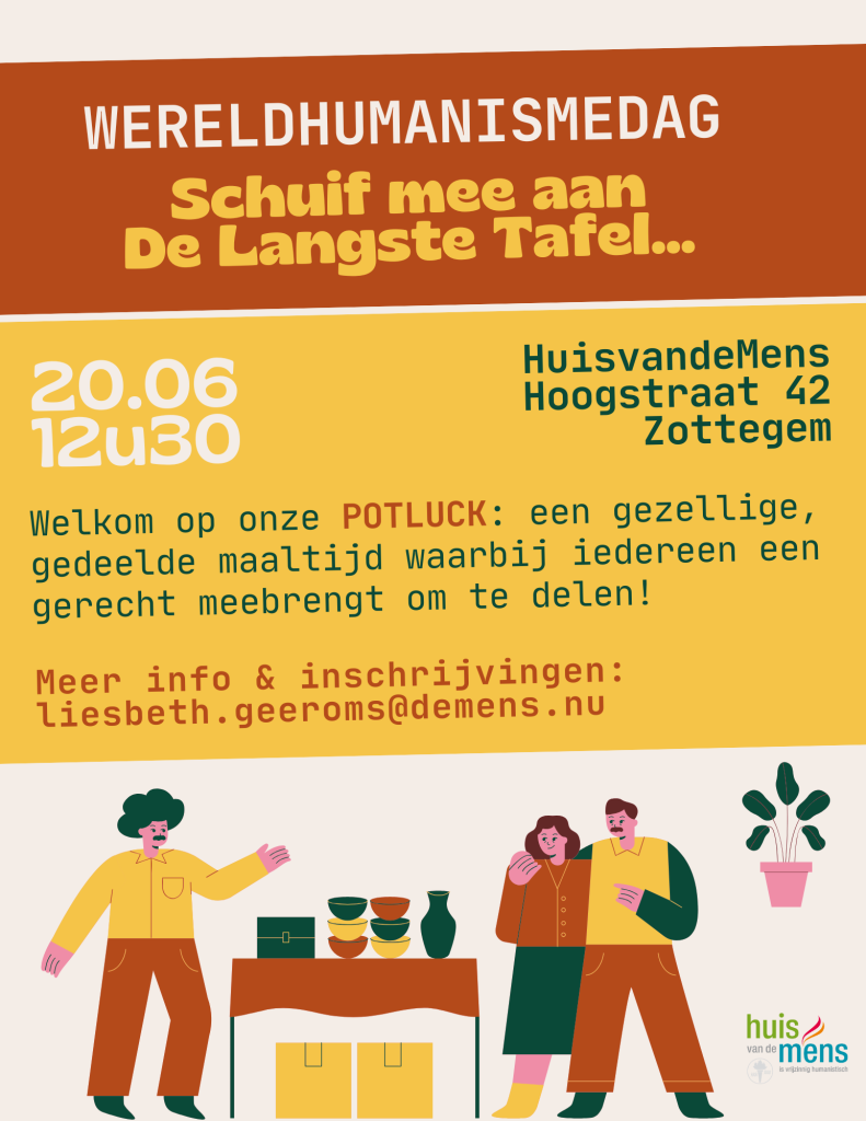 2 mei 2025Wereldhumanismedag vrijdag 20 juni om 12u30 Hoogstraat 42, Zottegem gratis Info en inschrijven via liesbeth.geeroms@demens.nu In het kader van onze Wereldhumanismedag…
