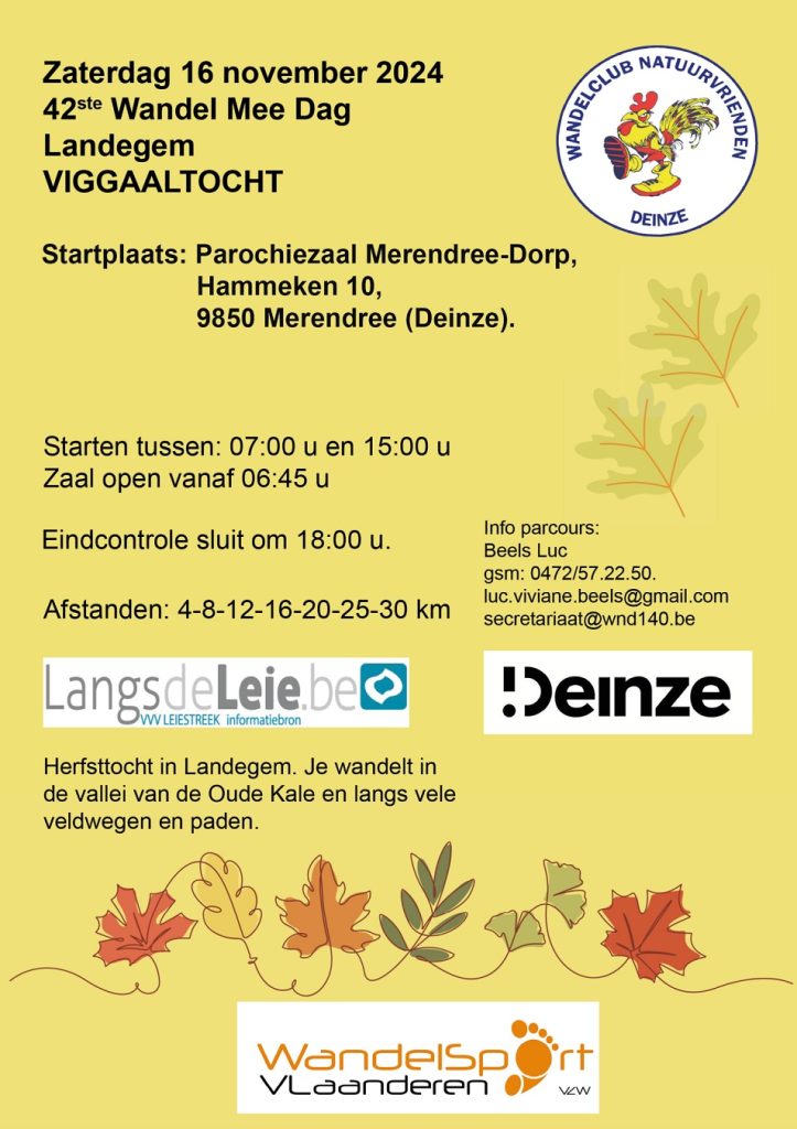12 november 2024Op zaterdag 16 november 24 organiseert de Wandelclub De Natuurvrienden Deinze haar 42ste Wandel Mee Dag. Er wordt gestart in…