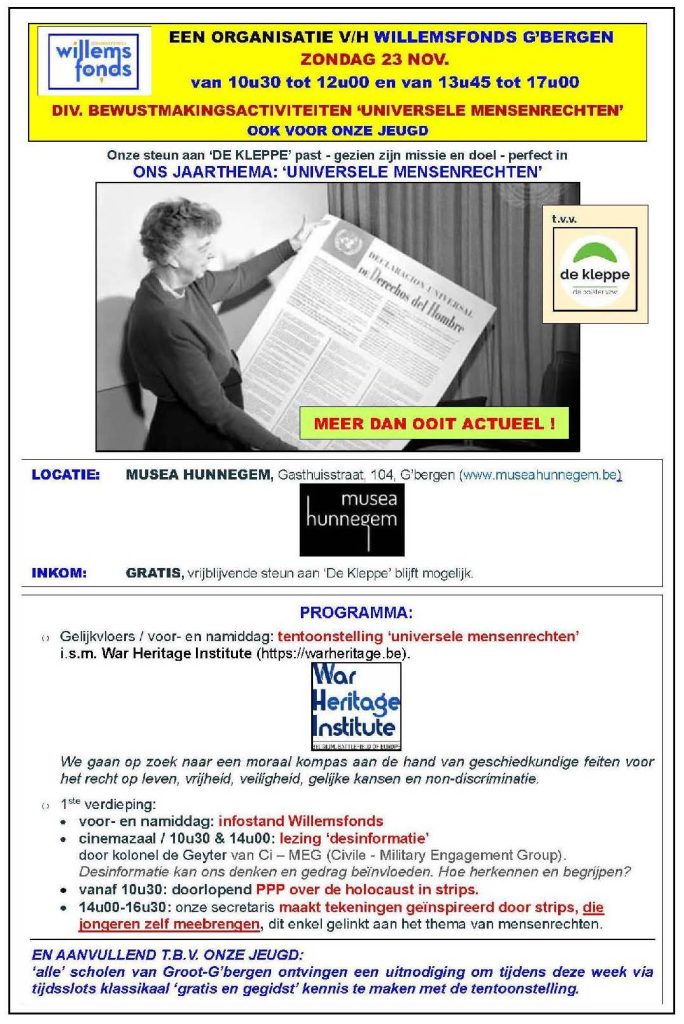 20 oktober 2025zondag 23 november 2025 Musea Hunnegem Gasthuisstraat 104 Geraardsbergen inkom gratis - van 10:30 tot 12:00 en van 13:45 tot…