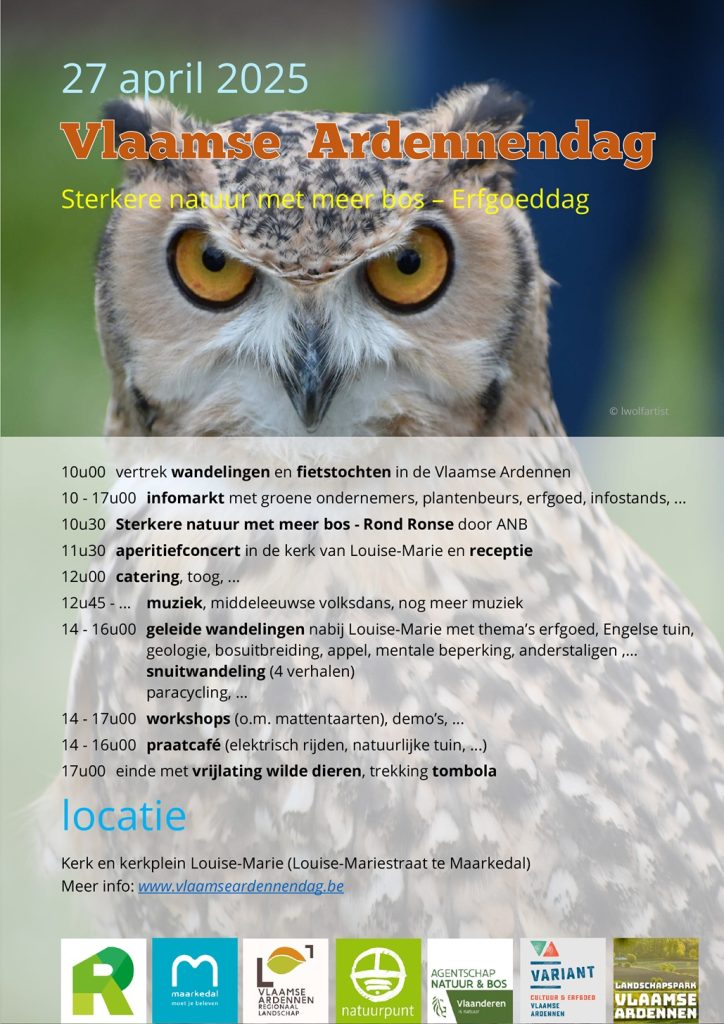 - Vlaamse Ardennendag17 januari 2025zondag 27 april 2025 met afspraak in en rond de kerk van Louise-Marie (Maarkedal) La Salettestraat 22, 9680 Maarkedal (Louise-Marie). De Vlaamse…