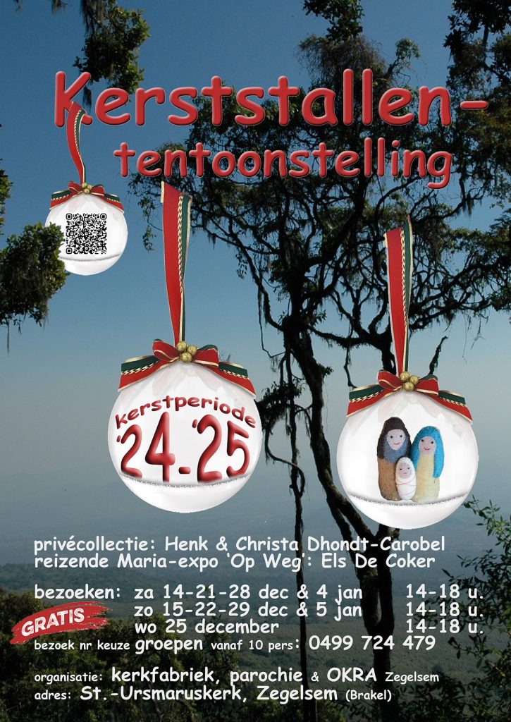 - Kerststallententoonstelling26 november 2024Kerstperiode ’24-’25, telkens van 14 tot 18 u. o za-zo 14-15 dec 2024 o za-zo 21-22 dec 2024 o wo…