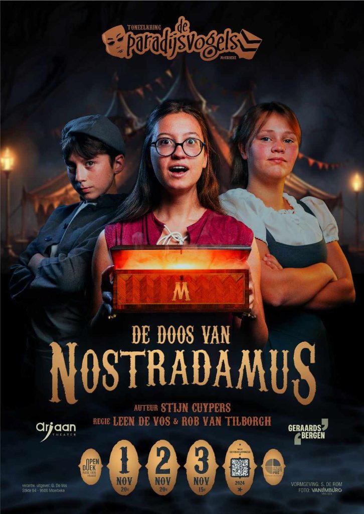 7 oktober 2024De doos van Nostradamus. vrijdag 1 november - 20.00 tot 22.00 zaterdag 2 november - 20.00 tot 22.00 zondag 3…