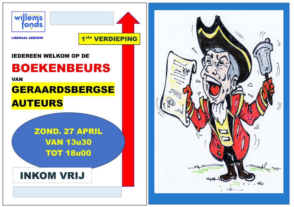 24 april 2025Boekenbeurs van Geraardsbergse auteurs zondag 27 april van 13:30 tot 18:00 Liberaal Gebouw Markt Geraardsbergen vrije toegang Willems Fonds