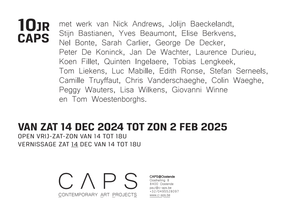 5 december 2024CODA 14 dec - 02 feb 2025 Contemporary Art Projects Oosthelling 8 - 8400 Oostende open vrij-zat-zon van 14:00 tot 18:00…
