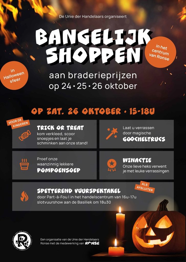 17 oktober 2024een dag vol magie, verrassingen en griezelplezier! Zaterdag 26 oktober vanaf 14u Locatie: Winkelstraten van Ronse Hoogtepunt: Vuurshow om 18.30 uur aan…