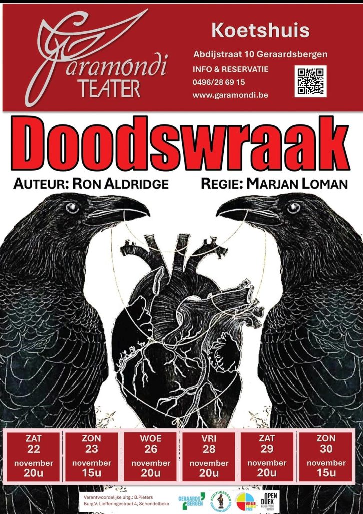 2 oktober 2025Doodswraak Zaterdag 22 november 2025 om 20u.00 Zondag 23 november 2025 om 15u.00 Woensdag 26 november 2025 om 20u.00 Vrijdag…