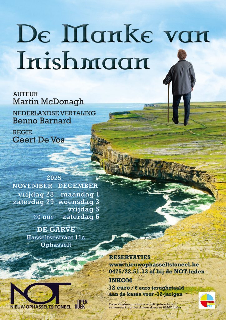 - Nieuw Ophasselts Toneel22 oktober 2025De manke Inischmaan Het Nieuw Ophasselts Toneel brengt dit najaar 'De manke van Inishmaan' op de planken, een rauw portret…
