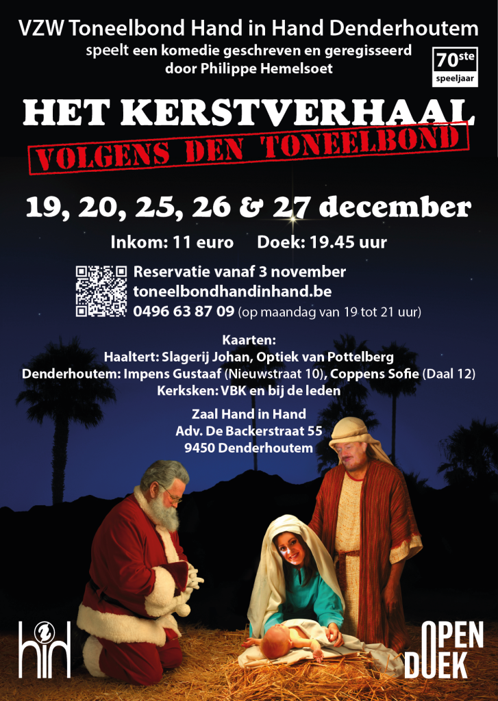 25 november 2025‘Het kerstverhaal, volgens den Toneelbond’ De opvoeringen vinden plaats op 19, 20, 25, 26 en 27 december in zaal Hand…