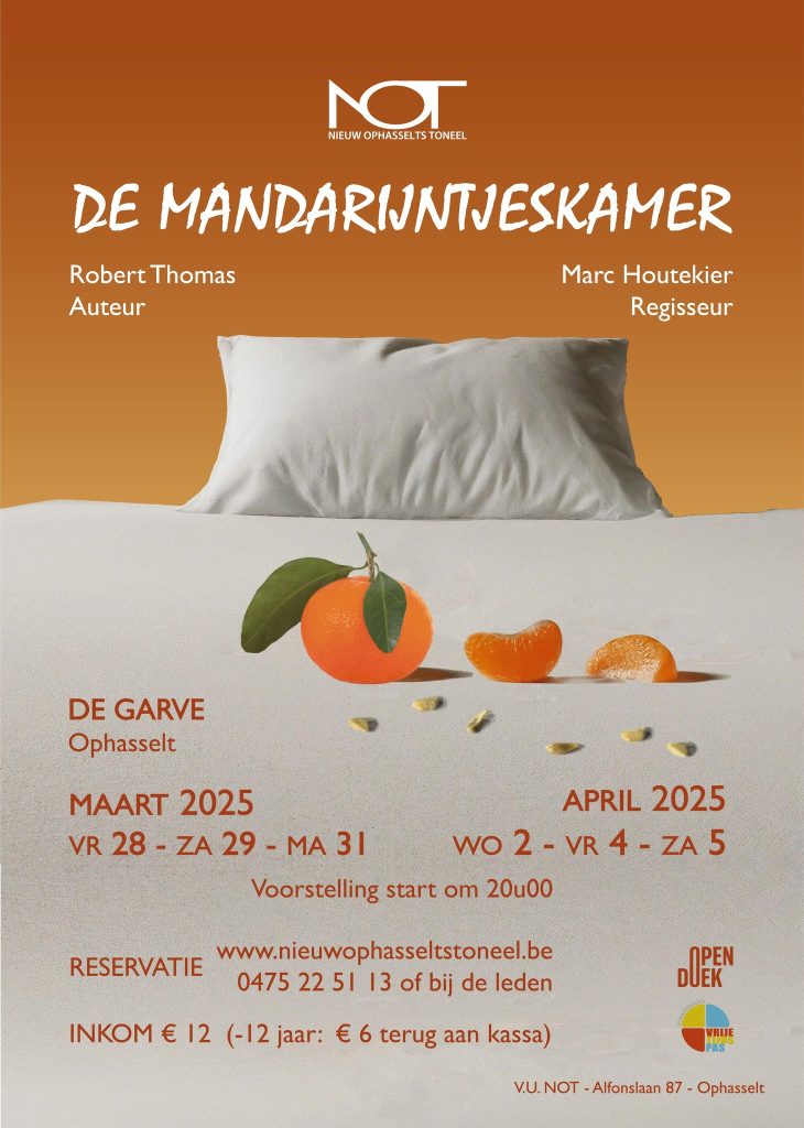 13 februari 2025De Mandarijntjeskamer Speeldata: 28 - 29 - 31 maart & 2 - 4 - 5 april zaal De Garve Hasseltsestraat…