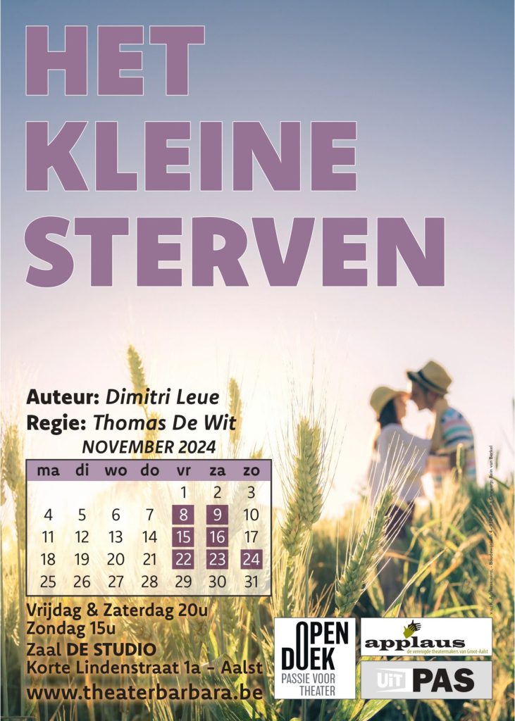 2 oktober 2024'Het kleine sterven' vrijdag 8 november 2024 om 20u zaterdag 9 november 2024 om 20u vrijdag 15 november 2024 om 20u zaterdag 16 november…