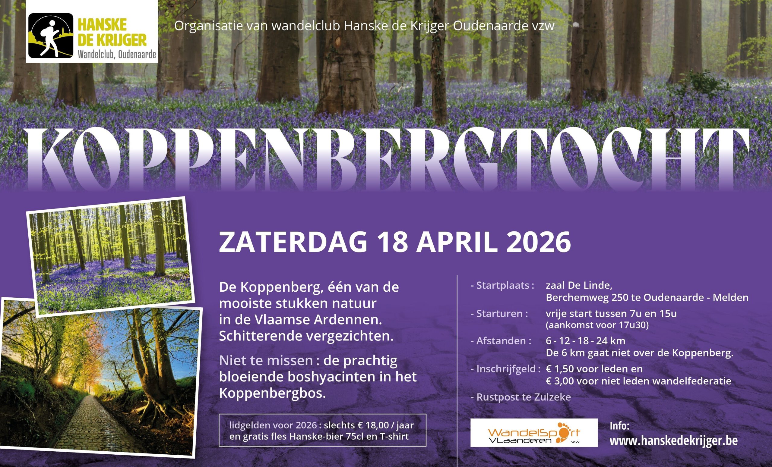 Hanske de Krijger Oudenaarde Zaterdag 18 april 2026 07.00-15.00Melden (Oudenaarde)Start : Dorpshuis De Linde Berchemweg 250